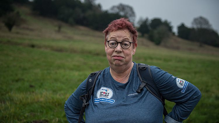 Jo Brand’s in the middle of the toughest challenge of her life: walking east-to-west, from one side of the country to the other in seven days for the BT Sport Relief Challenges: Jo Brand’s Hell of a Walk.