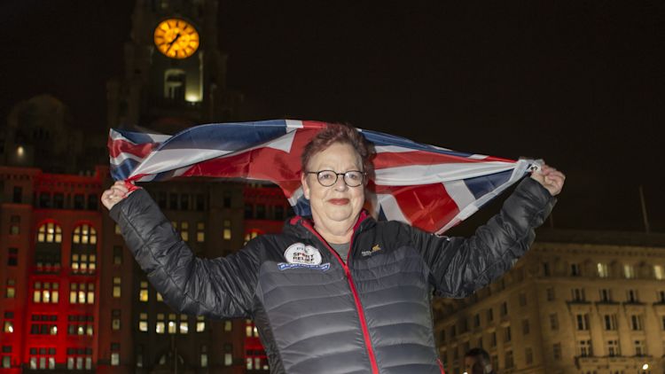 Sport Relief legend John Bishop was there to welcome her over the finish line at the Royal Liver Building in Liverpool.