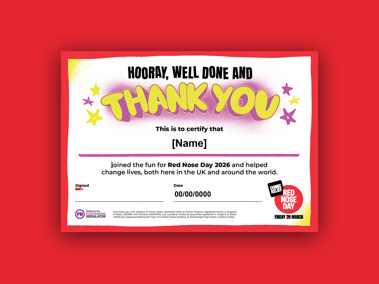 Celebrate your epic fundraising with your very own Red Nose Day certificate