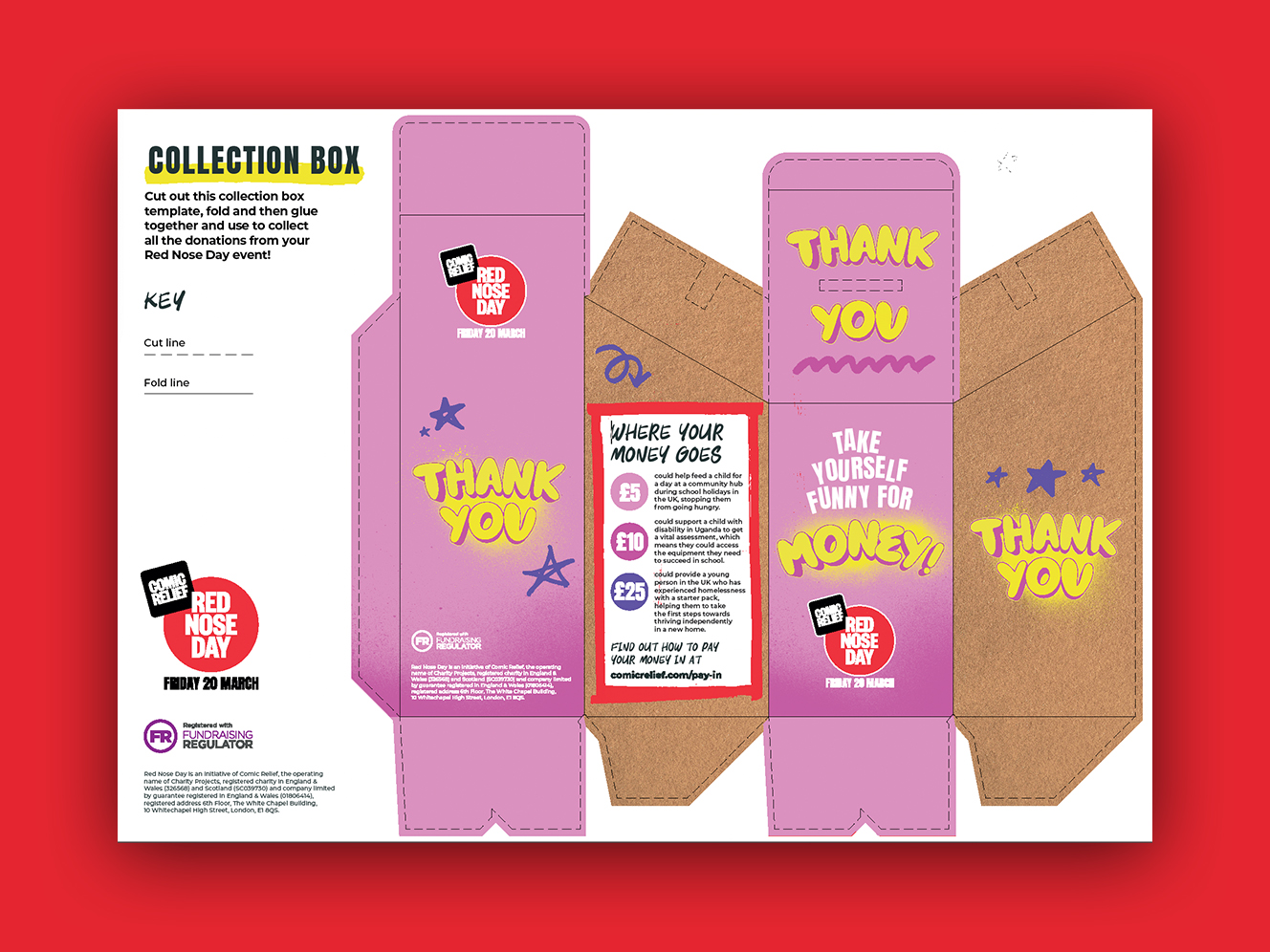 Print out this collection box to collect all your Red Nose Day fundraising cash.
