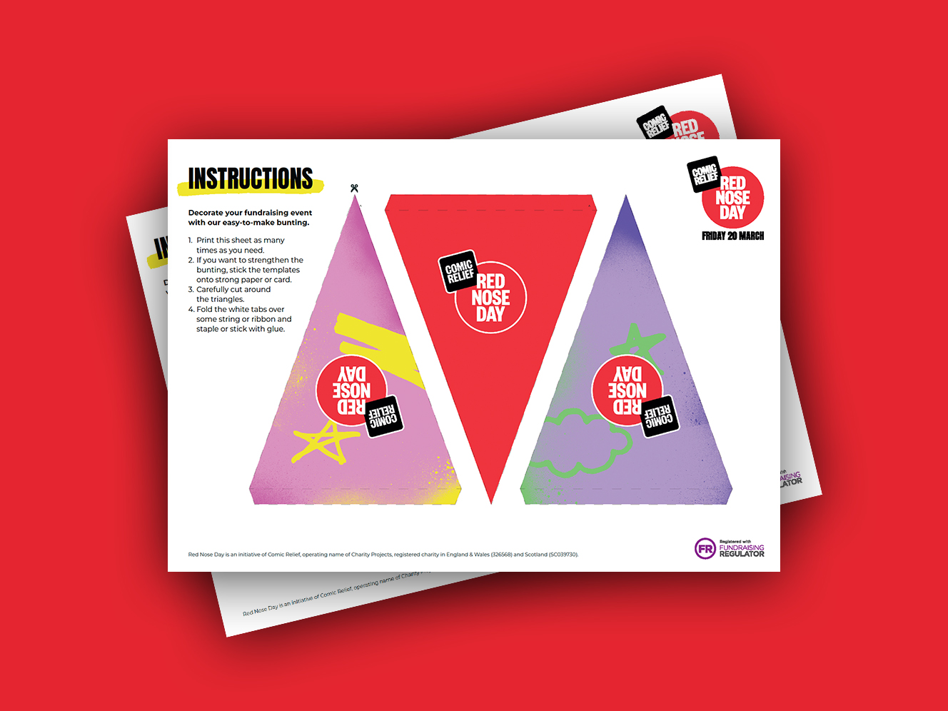 Decorate your fundraising event in style with this Red Nose Day bunting to print off at home.