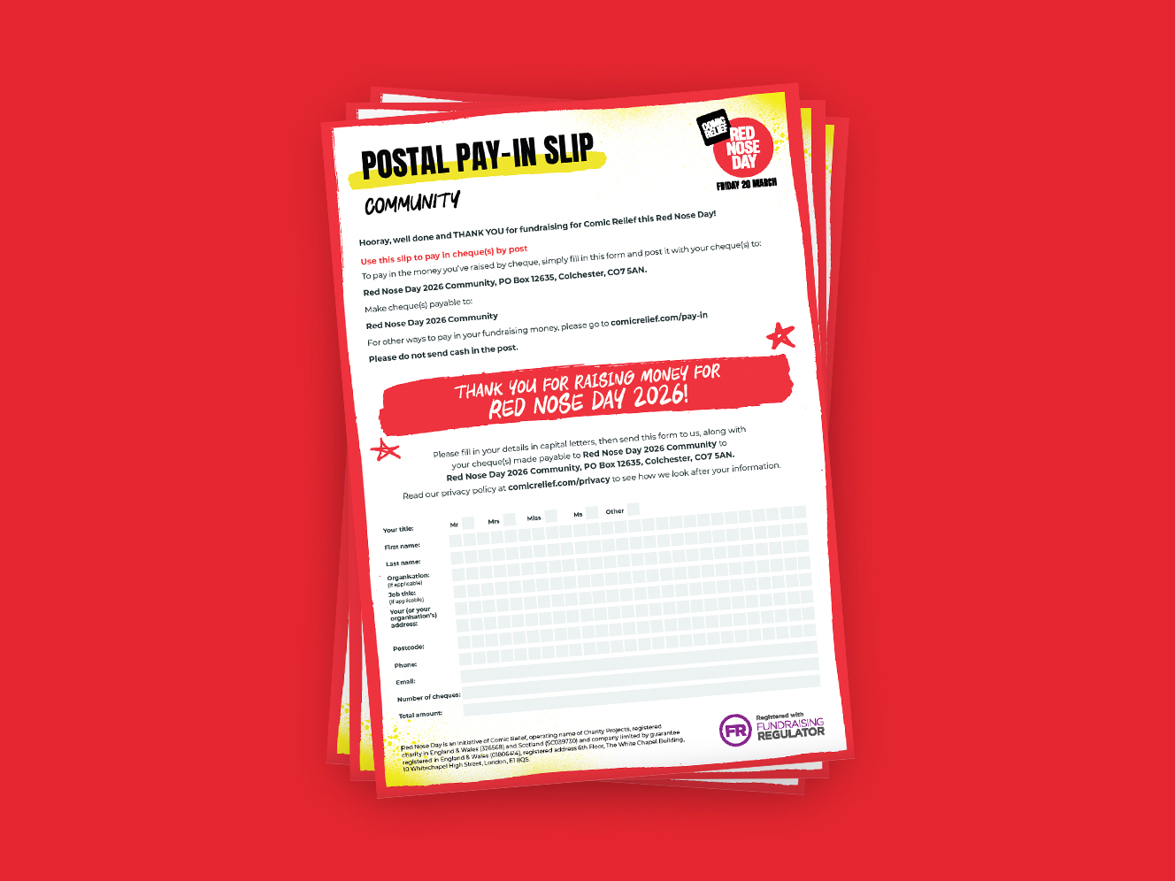 Not able to print? Order your exclusive Red Nose Day fundraising packs from our shop.