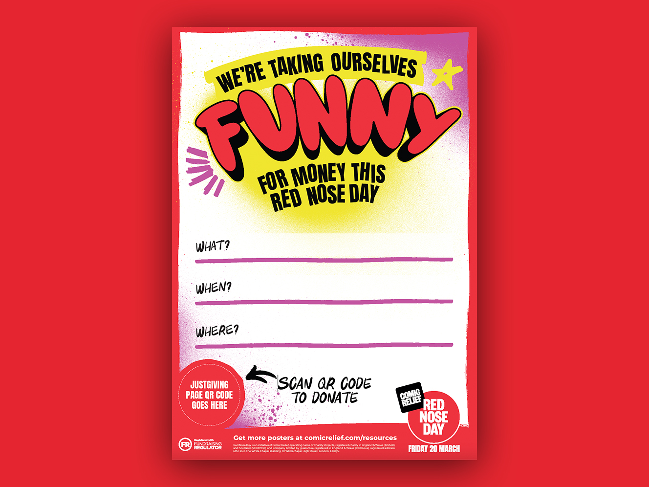 Put up this poster to promote your Red Nose Day fundraising event