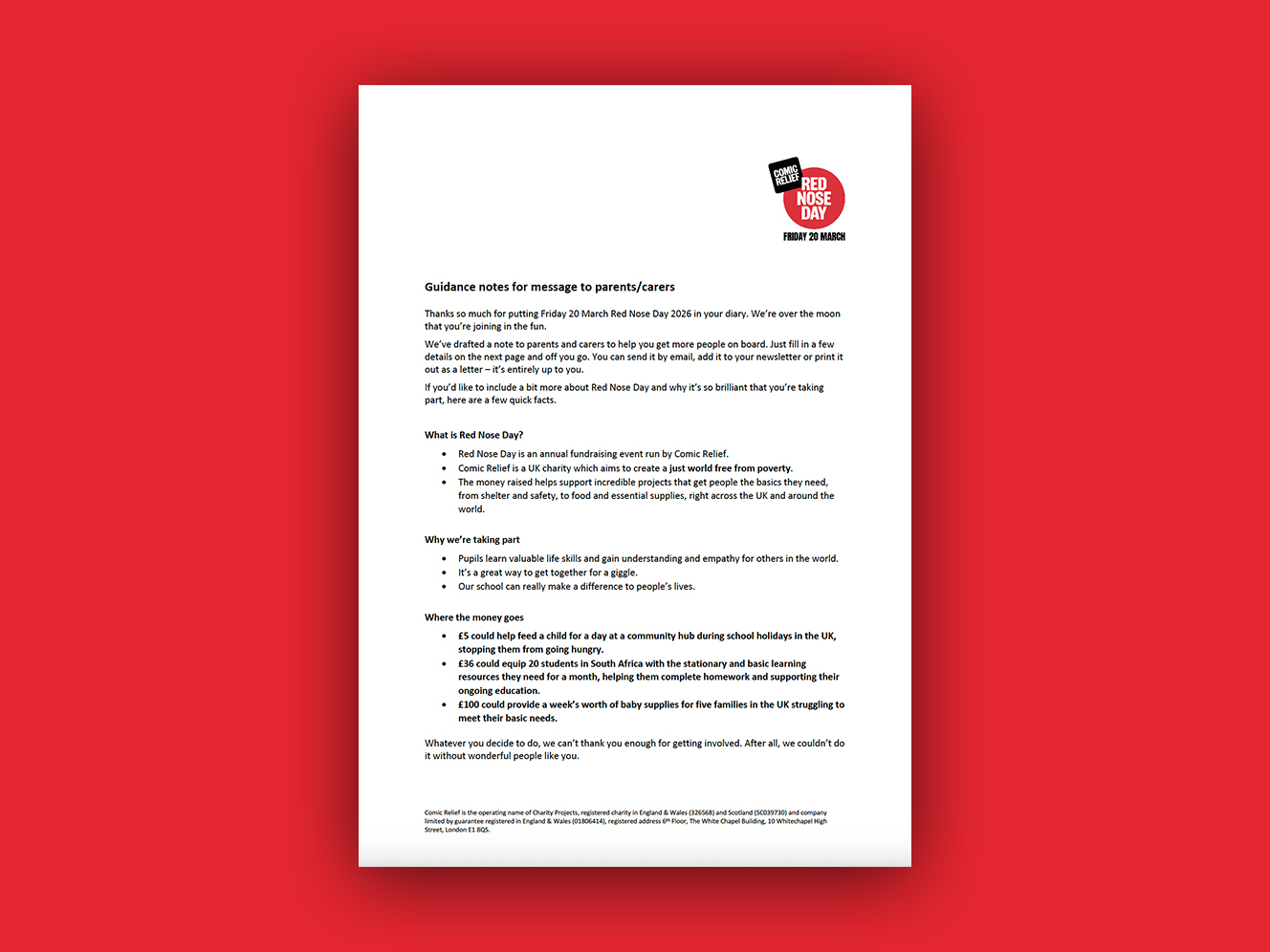Hand Red Nose Day planning over to your school council.